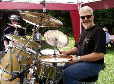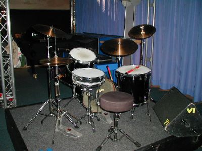 TROYAN in 22",13",16" und Flo sorgt am Mixer für den guten Sound. Die Snare ist hier eine 14x6,5 Pearl mit Messingkessel