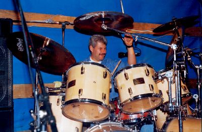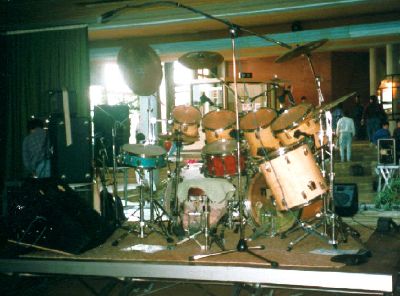 Da ich damals (und immer noch) absoluter Simon Phillips Fan war, mussten natürlich zwei Bassdrums und jede Menge Toms her. Am Setaufbau, den ich damals spielte, war die Ähnlichkeit zu Simons Aufbau nicht zu übersehen. Ich begann sogar die HiHat mit Links zu spielen!