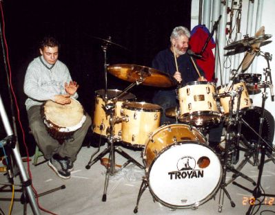 Das gleiche "Troyan" Set wieder etwas abgespeckt in 22", 10", 12", 14" und 16". Flo an der Djembe