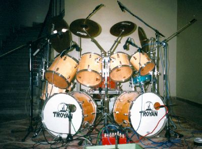In einer kleinen Werkstatt in München wurden damals die ersten Sets der Marke "TROYAN" mit Maple-Kessel in massivholz Fassbauweise hergestellt. Der Sound hatte mich total umgehauen und ich investierte jede Mark und auch bei der Produktion viel eigene Arbeitskraft in mein Traumset.